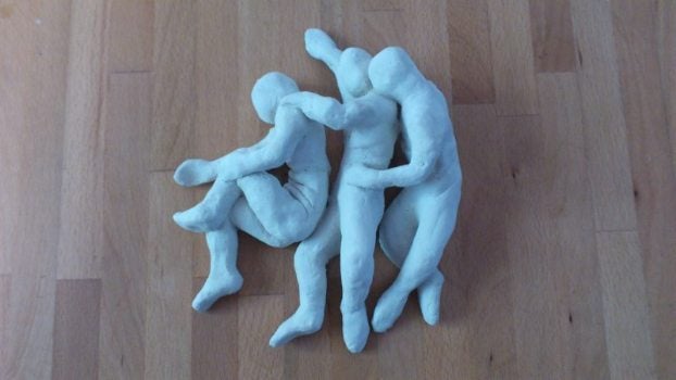 Ik heb eerst de grove vormen bij elkaar gehouden met ijzerdraat. Vervolgens heb ik gezorgd dat het geheel steviger werd met lijm, hierdoor kon ik ook hier en daar nog iets veranderen. De lijn heb ik opgelost in water zodat deze dunner werd en goed door het papier werd opgenomen.