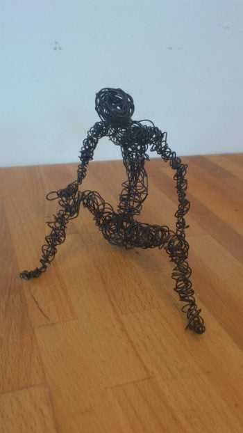Deze 'zittende man' heb ik van ijzerdraad gemaakt.